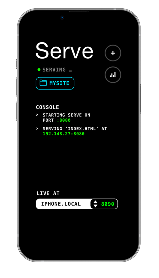 Serve is a concept for a supermobile web server that lives on your iPhone or iPad. It allows you to serve static files and web pages over http to connect locally.